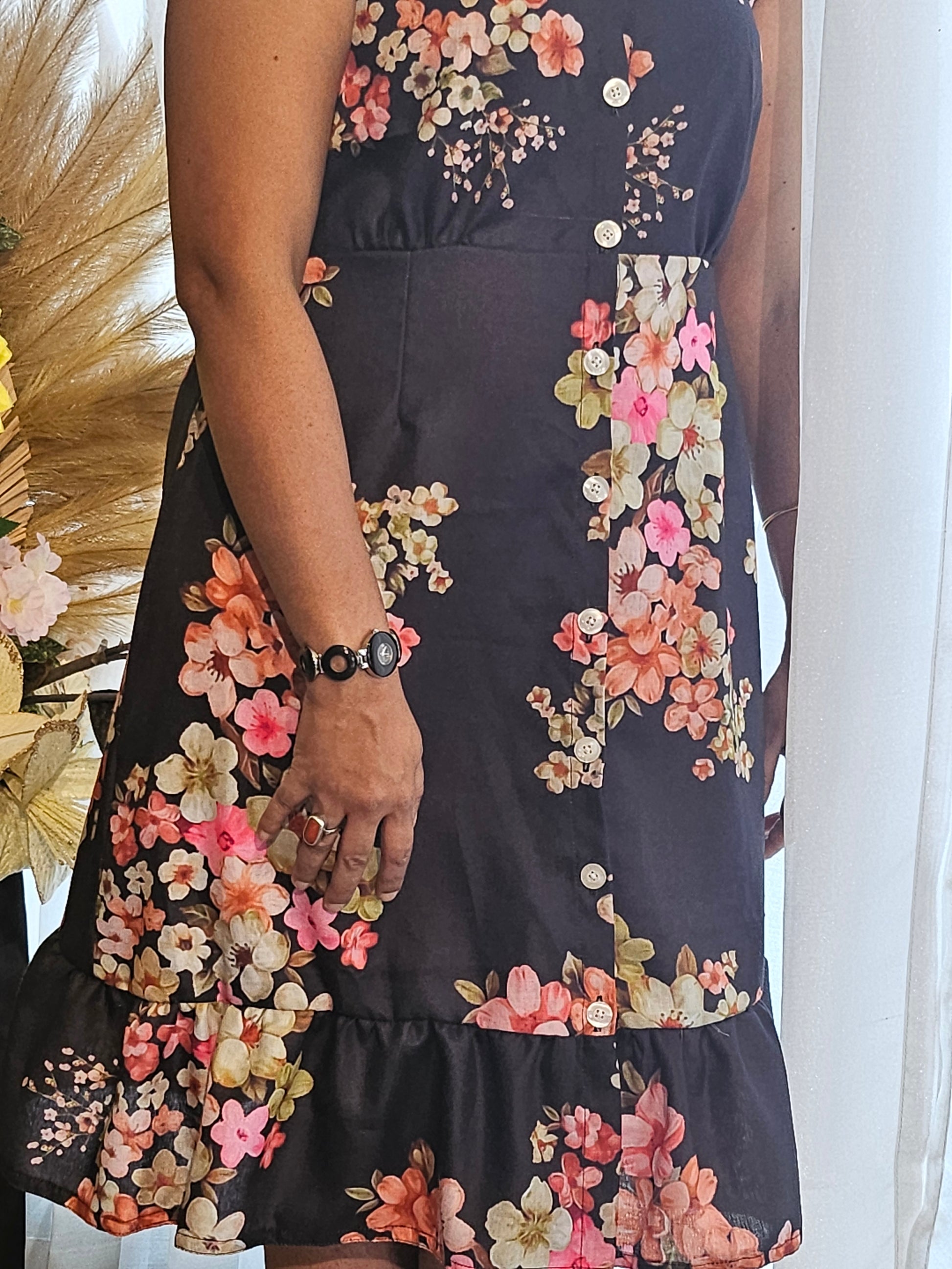 Black floral A-lined dress
