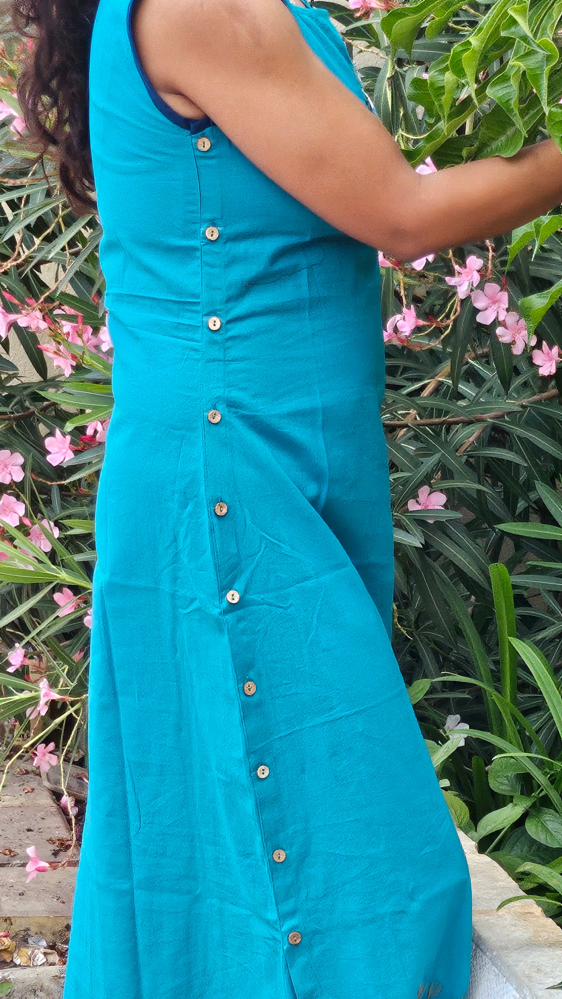 Design Features: Boat neckline for a clean, modern look; wooden buttons on the side panel add